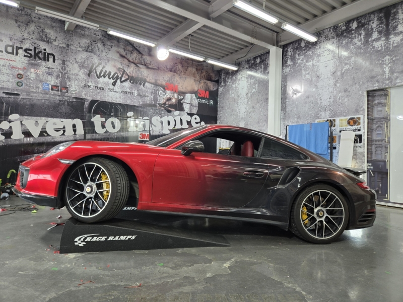 [팀카스킨 화성] 포르쉐 911 터보S 앞범퍼 재시공 Avery Gloss Metallic Soul Red UWF - 227GM